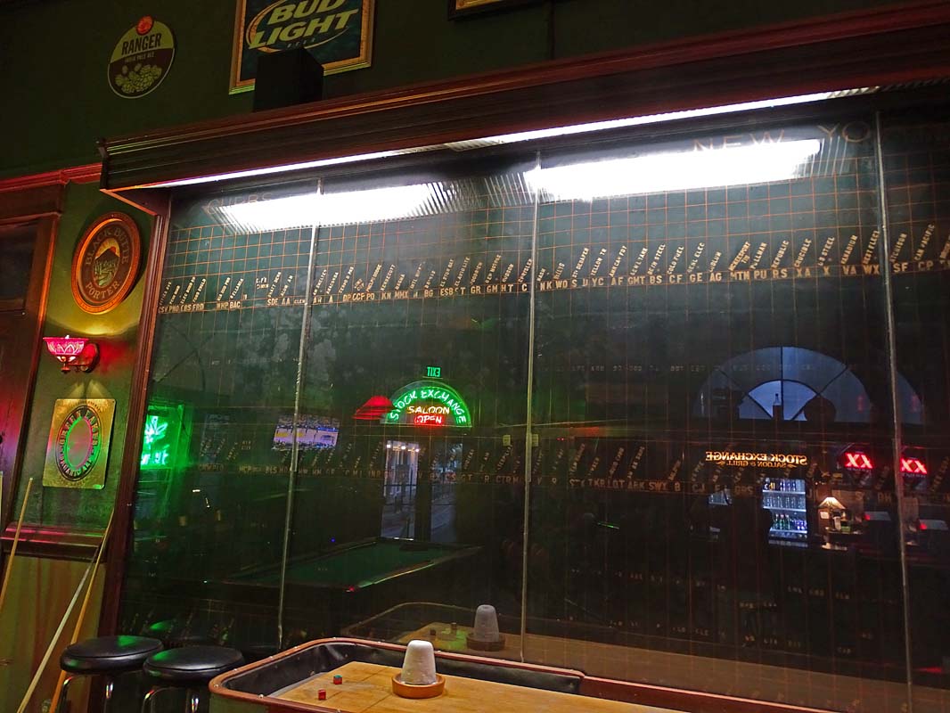 The brokerage firm of Duey and Overlock, located on the second floor, was convinced to relocate their offices to the main floor. A stock board was installed in place of the disassembled bar. A daily ticker tape was sent from the E.F. Hutton offices in Manhattan and the New York Stock Exchange in Arizona was born.