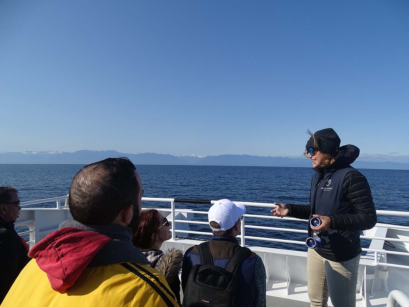 We headed out of the harbor at full speed and after the safety information talk we headed up to the forward deck. We traveled out between the United States side and the Canadian side in the Strait of Juan de Fuca, straddling that invisible line in the ocean differentiating separate countries.