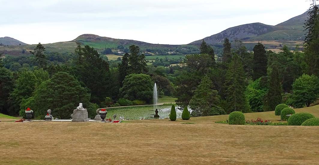 After we finished touring the inner city of Dublin, we headed to Wicklow Hills and toured the magnificent Powerscourt Estate and Gardens. We finally got our tea and coffee but they only served hot coffee so there were 2 unhappy tourists (Patti and Audra) who love their frappachinos, frothy and icy cold – settling for plain old hot coffee, yuk. But there was one very happy hot tea drinker… me!